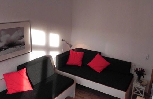 Dos dormitorios con armarios empotrados y 2 camas individuales de 90 x 200 cm (z. T. como una cama doble ajustable) y una zona de estar con 2 camas individuales de 90 x 200 cm ofrecen cómodos asientos para 6 personas.