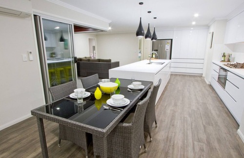 Significado maorí para el océano. Esta nueva y elegante casa de vacaciones ofrece sofisticación al tiempo que brinda todas las comodidades del hogar y en el lugar más conveniente. Adecuadamente adyacente al precedente de compras de Agnes Water: dé un simple paseo a cafés, restaurantes, la taberna y un fácil paseo a la playa. Aparca el coche y disfruta de este alojamiento para familias en Agnes Waters.