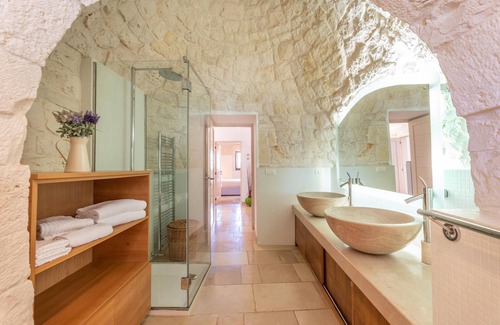 Trullo with pool, of 300 m2 in locorotondo with 5 bedrooms and 5 baths for 14 persons .