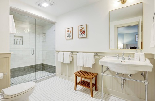 Your private King Room is located at the ground level rear of the Cottage. The room features a plush King bed with luxury linens and a smart TV for your entertainment. The private en-suite bathroom is equipped with a shower and a hairdryer for your convenience.