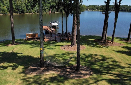 Gather your group at this renovated log cabin tucked into a peaceful cove on Lake Murray. After a fun day on the water, relax together in the cozy living room, game room or out on the spacious porch with a hot tub. Fire up the grill or cook in the fully equipped kitchen, then share a meal on the deck while enjoying serene lake views.