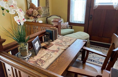 "The Edmond" an 1887 Arts & Crafts gem! - 1 King - 1 Queen Se encuentra en St. Joseph. "The Edmond" an 1887 Arts & Crafts gem! - 1 King - 1 Queen ofrece alojamiento, con Instalaciones de bienestar, Chimenea/Calefacción, Niño amigable, Entre otras comodidades. Estas características Casa Instalaciones de bienestar, Chimenea/Calefacción, Niño amigable, Para que su estadía sea cómoda.