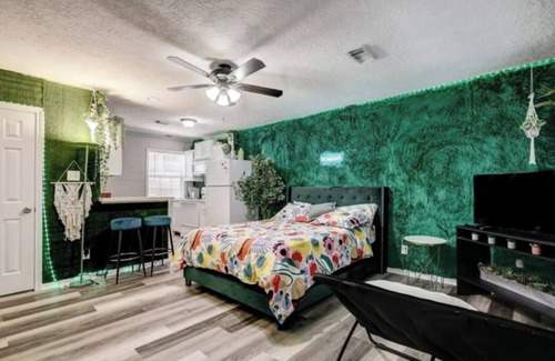 This Uniquely designed space is themed to inspire the tranquility of a thriving greenhouse. Located in one of Houston's most progressive, diverse and vibrant neighborhoods, the Greenhouse Effect is sure to be a cozy retreat for all who visit.