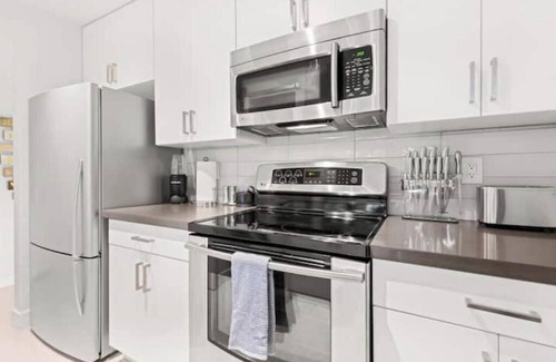 Este alojamiento de 2 dormitorios y 1 baño cuenta con aire acondicionado y escritorio. El cuarto de baño incluye un secador de pelo, toallas y papel higiénico. La cocina está equipada con horno, placa de cocina y frigorífico, además de cafetera y tetera, hervidor eléctrico y microondas. Y como podrás aprovechar la lavadora y la secadora, no te hará falta llevar mucho equipaje.