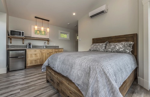 El Lodge on Harrison Lake ofrece suites de un dormitorio totalmente amuebladas, todas con entradas privadas. Todas las suites están completamente equipadas con un televisor de pantalla plana de 40 ", Wifi (Internet 50), microondas, mini-nevera con congelador, cafetera / tetera Keurig y suministros básicos de cocina. El patio privado ofrece el escenario perfecto para el café de la mañana o el vino de la tarde. Todos los colchones son de primera línea, con 6 colchones de hotel de diamantes y una selección de almohadas que asegurarán un sueño reparador.