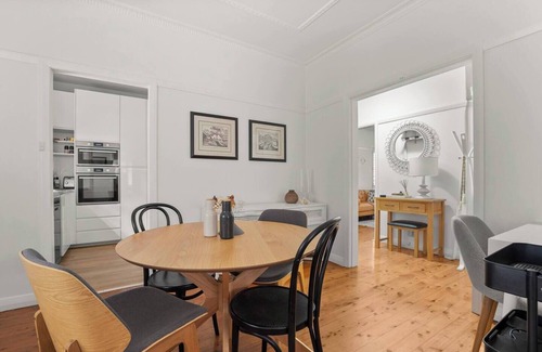 Just minutes from Balmoral Beach, this thoughtfully styled Mosman apartment blends relaxed coastal living with timeless Art Deco character. Trendy cafés, renowned restaurants, boutique shopping and scenic foreshore walks are all within easy reach. Inside, the light-filled living area invites relaxation with a smart TV, while the well-equipped kitchen and dedicated workspace make extended stays effortless. Spit Junction is just a short stroll away, offering direct bus access to the vibrant CBD.