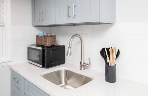 Prepara una comida casera en la cocina, equipada con horno, placa de cocina y frigorífico, además de cafetera y tetera, microondas y utensilios de cocina. Disfruta del wifi y de la televisión. Y como hay una lavandería en los alrededores, no necesitarás llevarte mucho equipaje. Otras comodidades de este alojamiento de 1 dormitorio y 1 baño incluyen ropa de cama, una tabla de planchar, aire acondicionado y calefacción.