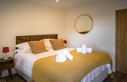 Unwind on the spacious king-sized bed with bedside tables and lamps, ensuring a restful night's sleep. Stay entertained with the mounted smart TV and pamper yourself in the ensuite shower room with its large rain showers, complimentary toiletries, and cozy bath robes.