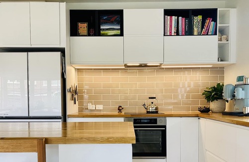 The double fridge offers ample storage for all the local goodies and premium consumables you may collect - think Bruny Island cheeses and cool climate wines!