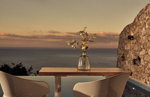 Villa Rufus offers a truly unique and luxurious experience, perched on the upper level of a hill as the island's first-ever cave accommodation. This stunning suite redefines cave dwelling with its exquisite modern design and lavish interior. The expansive open-plan living area is bathed in natural light, thanks to the enormous glass doors that seamlessly connect the indoors with the outdoors. Step out onto your private terrace, complete with an infinity pool, where you can immerse yourself in the tranquility of nature while enjoying breathtaking panoramic views of the sea.