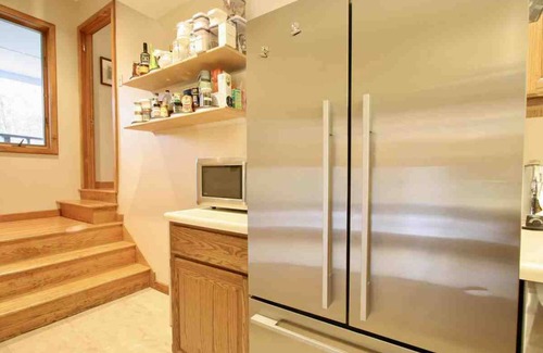 La cocina, aunque compacta, tiene todos los electrodomésticos y equipos necesarios para preparar comidas fantásticas a partir de los alimentos cultivados y cultivados localmente que puede obtener en los muchos mercados de agricultores en el área. Se incluyen todos los elementos esenciales, como toallas, sábanas, jabón, papel higiénico y almohadas. Hay estanterías de despensa completamente surtidas que incluyen granos de café, productos básicos de cocina, condimentos y productos secos. Para comenzar su estadía, los artículos de desayuno, como el tocino local y el pan horneado artesanal, se almacenan en el congelador. La cocina incluye un rango de convección superior de cerámica Kitchen Aid, lavavajillas Bosch y refrigerador / congelador con puerta francesa Fisher Paykel. El inventario de la cocina incluye una tostadora y microondas Breville, Vorwerk Thermomix (una licuadora alemana con esteroides), una olla instantánea, un procesador de alimentos Cuisinart, un molinillo de café Baratza y una cafetera de goteo Technivorm. La cocina ha sido provista con utensilios de cocina finos, incluidos Cristel, Le Crueset, Mauviel, Finex, Wusthof y ScanPan. La cubierta superior contiene una parrilla de gas, y una parrilla de carbón estilo Blaze Kamado se encuentra frente a la casa cerca de la cubierta inferior. Para el entretenimiento en el hogar, la sala de estar tiene un televisor de alta definición 4K conectado a un receptor de satélite Dish. Tanto este televisor como el que se encuentra en la gran habitación del piso superior están conectados a los servicios de transmisión de Internet proporcionados por las cajas Roku. No tenemos aires acondicionados. Debido al aire fresco de la montaña y la elevación de 1300 pies, solo ocasionalmente usamos los ventiladores provistos en los días más calurosos de verano.