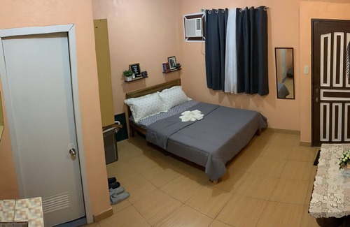Habitación tipo estudio con 1 cama Queen, baño y cocina propios, con un colchón adicional para una persona adicional. Perfecto para viajeros en solitario, parejas, "barkada" o grupo de amigos y una familia pequeña.