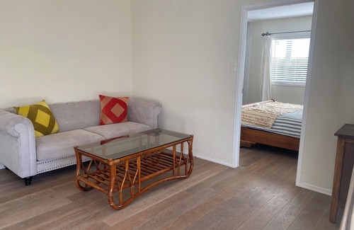 Enjoy a peaceful stay in the charming seaside suburb of Torbay. You will love the close proximity of Waiake Beach and Long Bay regional park as well as the village shops and cafes (short flat walk). Bus stop outside connects you to Albany and the city. There is also an off street car park. The accomodation is private, being beside, and partly below, the main house. The kitchen has a compact fridge/freezer with a microwave and airfryer. Being all on one level, the accomodation is also wheelchair friendly.