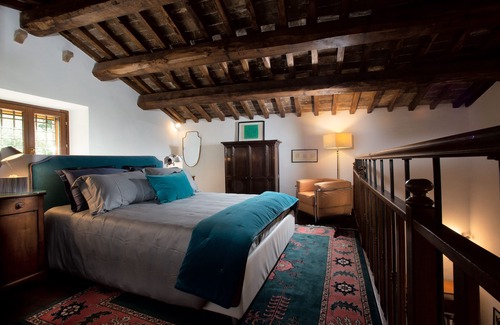 La casa de este artista restaurado con amor se encuentra en un "bosque sagrado" en la ladera de Monteluco, que tiene una reserva natural boscosa frente a Spoleto. La propiedad se encuentra tranquilamente en medio de olivares y está a tiro de piedra de senderos que terminan en un bosque famoso desde la antigüedad romana. La Torre dell'Artista incluye: sala de estar con chimenea y vistas espectaculares, cocina comedor renovada con chimenea y ventanas que se abren al comedor cubierto para servir comida al aire libre. En la planta baja, el dormitorio principal con baño en suite se abre a una terraza jardín con vistas a Spoleto y las montañas más allá. Arriba, el altillo tiene dos camas individuales. Hay un segundo baño con ducha y lavadero / cuarto de servicio separado en el piso principal más allá de la cocina. Un porche sombreado está fuera de la cocina, así como un aparcamiento sombreado y un extenso jardín en medio de los olivares. La propiedad cuenta con wifi y un spa que se encuentra cerca de la casa pero en un área muy privada tallada en la ladera dentro de la casa de lavado original con una vista espectacular de la ciudad de Spoleto y las colinas circundantes. La bañera de hidromasaje es fácil de operar y hay una refrescante ducha al aire libre: ambas están disponibles de mayo a octubre. Tenga en cuenta: el camino de entrada es empinado y la casa es una torre en tres niveles, por lo que no es adecuada para personas con problemas de movilidad.