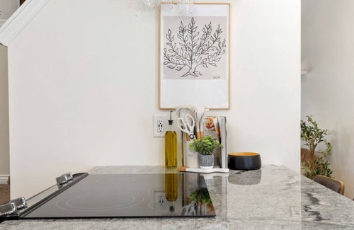 Las habitaciones de Townhome in Victorian Village disponen de aire acondicionado, cafetera y tetera y secador de pelo. El mobiliario se compone de escritorio, silla de oficina y mesa de comedor. La cocina está dotada de frigorífico, placa de cocina, microondas y utensilios de cocina.
