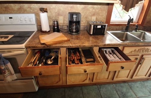 Además de lavandería, esta cabaña para no fumadores cuenta con un jardín y un área para parrillas.