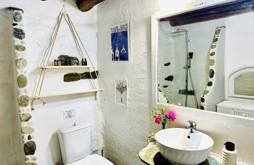 Centrally located within the property, the Kotseli Suite occupies the middle two floors, offering guests a unique blend of privacy and spectacular scenery. The upper level of the suite features two tastefully decorated bedrooms connected by a bathroom, alongside a cosy seating area where guests can gaze out at the valley and sea beyond. The lower level enhances the living experience with a fully equipped kitchenette and an inviting outdoor dining area, perfect for al fresco meals amidst the tranquillity of our vibrant gardens.