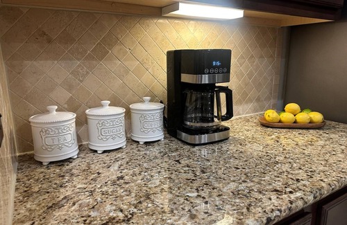 Una cocina totalmente equipada facilita la preparación de comidas caseras, con electrodomésticos modernos y amplio espacio en la encimera. Compartan sus comidas en la mesa del comedor o disfruten de una barbacoa al aire libre.