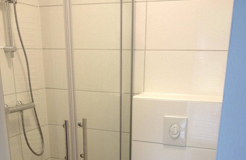 El apartamento consta de una sala de estar, un baño con ducha y una cocina totalmente equipada con lavavajillas en la planta baja y un dormitorio y un baño completo con bañera arriba. El sótano también tiene una lavadora y una mesa de billar. Además, hay una zona de asientos en frente de la casa, que es ideal para tomar el sol, barbacoas y persistentes.