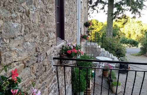 La casa rural se encuentra entre lo que solían ser dos granjas, todas construidas de granito con vigas de roble, la primera casa que se cree que data del siglo XVII. La casa rural originalmente albergaba a los animales y se enfrenta a lo que originalmente eran antiguos establos de granito. Irónicamente, la granja original ahora se usa para estabilizar a los propietarios con dos caballos durante el invierno. La casa rural se ha beneficiado recientemente de la actualización, aunque se ha utilizado como hogar durante muchos años. Está amueblado con buen gusto en un estilo tradicional de granja francesa, y tiene camas antiguas sólidas, vigas a la vista y mucho carácter. Como las paredes son de granito grueso, la casa rural se mantiene agradable y relativamente fresca en días muy calurosos. La terraza con balcón al frente es el lugar perfecto para sentarse y disfrutar del desayuno, el almuerzo o la cena, ya que toda la propiedad está orientada al sur y se beneficia del sol durante todo el día. Hay 2 grandes cipreses en la entrada de la unidad, que conduce a la zona principal del paddock, más allá de que los robles maduros conducen colina abajo hasta el río tranquilo.