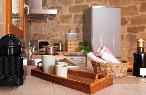 La Trullola es una vivienda espaciosa, con capacidad para 4-5 personas, que se ha rehabilitado respetando la configuración y los elementros tradicionales: paredes de piedra, vigas viejas de madera y un patio con barbacoa de obra donde aún se conserva la "trullola" que se utilizaba para decantar el vino.