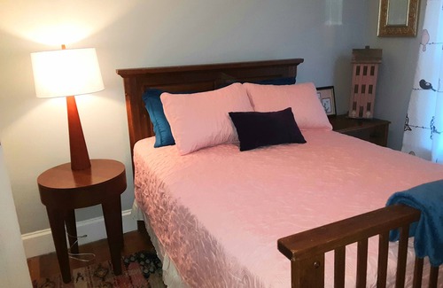 Acogedora y pintoresca casa de campo de roca de río de 1930, 1500 pies cuadrados, con entrada privada, ofrece 3 habitaciones con pisos de madera y una ducha de piso de piedra abierta única para su comodidad. Sala de estar con registros de gas, comedor para 6 personas, acceso a la cocina con barra de café completa y bocadillos veganos y vegetarianos. Desayuno continental de magdalenas, tostadas, mermeladas y frutas. Entrada privada con porche y columpio. La capacidad de cerrar la sala de estar y el dormitorio para una máxima privacidad. La casa está amueblada con 2 camas queen y una cama matrimonial, para 6 personas fácilmente. Wifi se proporciona de forma gratuita. Los terrenos ofrecen un estanque koi de 14,000 galones, un gran patio con bar, mesa y sillas, un gran patio, granero, un anillo para montar y una variedad de animales de rescate de varios tipos. Abordamos y rescatamos caballos, y los caballos son visibles desde el porche y el dormitorio delantero. Koi puede ser alimentado e interactuar con él. Los niños pueden montar a caballo con asistencia, por una tarifa de alquiler razonable. A los cerdos, cabras y patos se les puede dar golosinas.