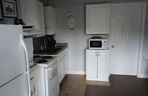 Amplia unidad de 1 dormitorio con cama de matrimonio y sala de estar / área de cocina con sofá cama Queen. Casa privada en una calle tranquila con vistas a la montaña. Entrada independiente, en la planta baja. Configuración de cocina completa, con cocina eléctrica, microondas, lavavajillas, tostadora, cafetera y nevera completa. Streaming TV (Roku) con las principales redes y con Netfix. Wi-Fi, muy bien ajardinado Patio delantero accesible para la relajación. No accesible para discapacitados A pocos pasos de la carretera. Perfecto para una pareja o familia pequeña; minutos de Storyland y estaciones de esquí. Ubicación ideal para actividades de la zona: compras, esquí, senderismo, golf, rafting, etc. Parrilla de gas siempre bajo petición.