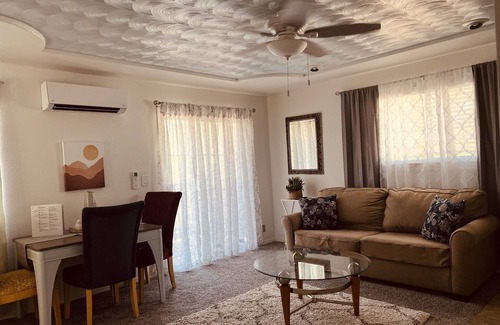 Al instalarte en este alojamiento de 1 dormitorio y 1 baño, encontrarás aire acondicionado y escritorio. Conéctate al wifi gratis, o relájate frente a un Smart TV. El cuarto de baño incluye un secador de pelo, toallas y papel higiénico. Prepara una comida casera en la cocina, equipada con horno, placa de cocina y frigorífico, además de cafetera y tetera, microondas y utensilios de cocina. Otras comodidades incluyen ropa de cama, una tabla de planchar, calefacción y una silla de oficina.