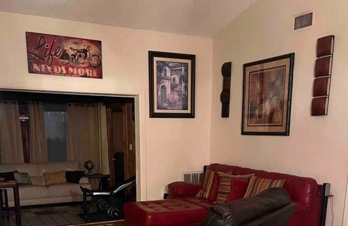 Al instalarte en este alojamiento de 3 dormitorios y 2 baños, encontrarás una sala de estar, una zona para barbacoas, chimenea y aire acondicionado. El cuarto de baño incluye toallas, papel higiénico y jabón. Prepara una comida casera en la cocina, equipada con horno, placa de cocina y frigorífico, además de cafetera y tetera, máquina de hielo y microondas. Podrás viajar con poco equipaje, porque tendrás una lavadora y una secadora a tu disposición.