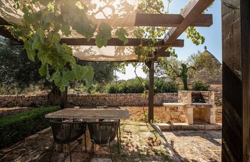 Una auténtica experiencia local en el corazón del campo de Apulia, Trullo Dos Olivos está rodeada por muros de piedra y olivos centenarios. Con una ubicación ideal para explorar el hermoso valle de Itria, este encantador Trulli ha sido cuidadosamente restaurado para conservar su carácter original. Relajarse junto a su piscina privada en un jardín tranquilo mirando a través de olivares y almendros o visitar algunas de las atracciones más famosas de la ciudad, incluyendo Puglia Trulli histórico de Alberobello y Ostuni medieval, conocida como la ciudad blanca. Podrás encuentra a 15 km de playas de arena y sólo un corto trayecto de restaurantes y bares. O bien, puede vivir como un local, recoger las verduras de su jardín, y comer debajo de la glorieta. Dormir debajo de los conos Trulli originales y disfrutar de un sabor único de la historia y la tradición de Puglia. Trullo Dos Olivos es un lugar mágico para la retirada de una pareja o unas vacaciones en familia.