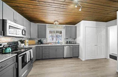 Este alojamiento de 2 dormitorios y 1 baño cuenta con una sala de estar, un comedor, una zona para barbacoas y chimenea. El cuarto de baño incluye un secador de pelo y toallas. La cocina está equipada con horno, placa de cocina y frigorífico, además de cafetera y tetera, máquina de hielo y microondas. Y no tendrás que llevarte ropa de más, porque podrás aprovechar la lavadora y la secadora.