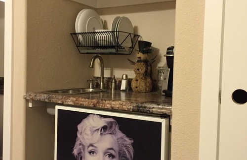 La unidad puede ser alquilado en su totalidad - o en la espalda "estudio" puede bloquear-off del resto de la propiedad y tiene una pequeña cocina, patio privado con bañera de hidromasaje, mesa de bar, cama de matrimonio y sofá cama doble.