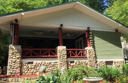 Su cabaña de madera está escondida en una tranquila zona de callejón sin salida del lago Junaluska. Esta cabaña de 3 dormitorios y 2. 5 tiene todo lo que necesita para unas vacaciones perfectas y tranquilas. La cocina cuenta con todas las comodidades del hogar, incluyendo una gran nevera, microondas, cafetera Keurig, cafetera, nueva estufa / horno y lavavajillas. Además, la cocina está equipada con platos, ollas, sartenes y utensilios. La cabina tiene calefacción y aire central, aunque con la fresca brisa de la montaña rara vez se necesita aire acondicionado. El dormitorio delantero tiene una cama de día y una cama nido. Abra las puertas francesas a esta habitación y deje que el sol de la montaña y el aire fresco de la montaña llenen la habitación. En el dormitorio del medio hay una cama Queen size con baño en suite que tiene una bañera antigua con patas, candelabro y ducha / combo. El dormitorio de atrás tiene una cama queen, un conjunto de literas y un sofá convertible. Justo afuera de esta habitación, hay un baño completo. Hay un sofá cama en la habitación familiar. La sala familiar es un excelente lugar para reunirse para jugar juegos de mesa o simplemente recostarse en el sofá y leer un libro. La habitación familiar tiene uno de los 2 televisores de pantalla plana satelital de alta definición con el otro televisor en el dormitorio del medio. Además, la cabina cuenta con WI-FI gratuito. Una chimenea con leña de gas en la habitación familiar te mantiene caliente en las noches frías. Disfrute de asar a la parrilla en el patio trasero cubierto donde se proporcionan una parrilla de gas y una mesa de picnic. Puede cenar fuera de la lluvia o el sol en el patio. El porche delantero es un gran lugar para pasar por alto el jardín delantero con hermosas flores, pájaros y mariposas. Café y sémola en el porche por la mañana ... ¡la vida no puede ser mejor que esto! El acceso por carretera a la cabina es fácil y hay un camino plano para estacionamiento.