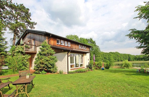 Construido en 2006 casa con tres apartamentos independientes está situado en una tranquila propiedad frente al mar, directamente en Polsensee, a unos 5 km al sur de Templin en el distrito Dargersdorf. La playa está a unos 200 metros de distancia. Están disponibles barco y el muelle de pesca con bote de remos, lavadero con lavadora, terraza, barbacoa, z. T. Balcón con vistas al mar, zona de aparcamiento y la mentira. Una sala corporativa y de fiestas con bar y chimenea se puede alquilar si es necesario. Pan de servicio los fines de semana con cita previa. El precio total incluye: ropa de cama, agua, energía y limpieza. Toallas favor traer su propio. A pagar en el sitio: depósito de 50,00 euros.