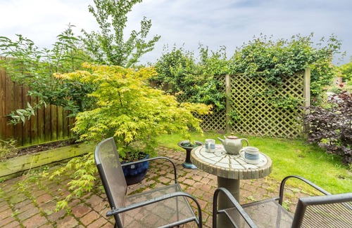 Hay un patio orientado al oeste con terraza y zona de césped, con amplios muebles de jardín. Tenga en cuenta que el patio no es seguro para los perros.