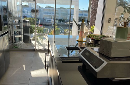 Hermosa Marina. Disfrute de unas vacaciones en uno de los puertos más grandes de Port Camargue Marina 250m2. Dormitorios (4) incluido 1 con terraza. Baño (2) uno con baño. Wc (2). Muy amplio living estilo loft. cocina totalmente equipada nevera americana cafetera Nespresso, horno y microondas; lavadero con lavadora + frigorífico. Gran terraza sombreada y jardín. Spa al aire libre Muelle privado de 25m. posibilidad de amarrar un bote, velero en el motor. Muy buenos beneficios. estacionamiento privado Boules cerca + Juegos de Casino, Seaquarium, Restaurante, Discoteca. Tiendas. Playa. Tenis. Posibilidad de alquilar un barco con o sin licencia en Alban (Alma náutica a 500 metros) desde la Marina