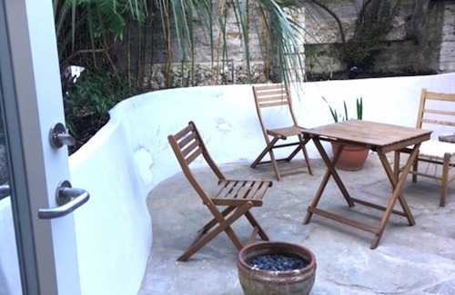 Una encantadora y luminosa planta baja de una habitación con pisos de parquet de madera y un jardín privado con patio orientado al sur. Una joya escondida muy tranquila en el centro de Londres.