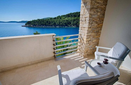 Luxury Villa Olynta is an impressive, cosy and luxurious waterfront villa with an amazing heated pool, located 5m from the breath-taking crystal blue sea with a private boat mooring on the island of Solta, which is short walk away from the small picturesque village.