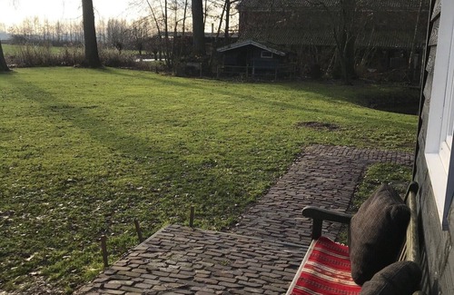 Nuestra cabaña holandesa de nueva construcción (2019) cuenta con calefacción por suelo radiante, acogedora sala de estar y cocina nueva con lavavajillas, horno y placa de inducción. Baño nuevo con calefacción por suelo radiante. en el 1er piso hay 2 dormitorios, ambos con camas dobles queen size. Vista directa del jardín y estanque / agua de pesca