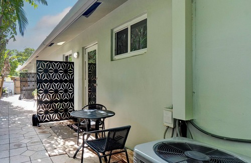 Bright and cozy 1BR/1BA apartment in Fort Lauderdale with free parking. Enjoy a fully equipped kitchen, smart TVs in both the living room and bedroom, and access to a relaxing backyard. Stroll to nearby bars, cafés, and restaurants, or drive just 10 minutes to Fort Lauderdale Beach and Las Olas. Only 5 minutes from lively Wilton Manors, this space is perfect for couples or business travelers looking for comfort near the beach, nightlife, and shopping!