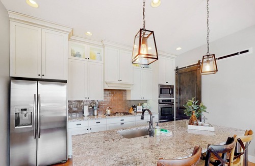 Este alojamiento de 4 dormitorios y 2.5 baños cuenta con una sala de estar, chimenea, aire acondicionado y oficinas. El cuarto de baño incluye un secador de pelo y toallas. La cocina está equipada con horno, placa de cocina y frigorífico, además de cafetera y tetera, máquina de hielo y microondas. Podrás viajar con poco equipaje, porque tendrás una lavadora y una secadora a tu disposición.
