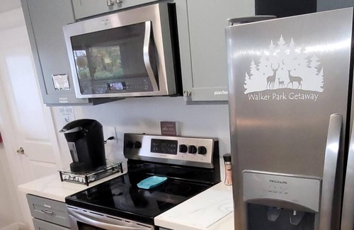 La cocina está equipada con horno, placa de cocina y frigorífico, además de cafetera y tetera, hervidor eléctrico y máquina de hielo. El cuarto de baño incluye un secador de pelo, toallas y papel higiénico. Y gracias a la lavadora y la secadora, podrás viajar con poco equipaje. Otras comodidades de este alojamiento de 2 dormitorios y 1 baño incluyen una sala de estar, ropa de cama, una tabla de planchar y calefacción.