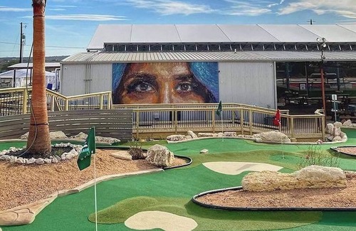You'll be located at Dreamland - an outdoor entertainment and arts venue that features 16 dedicated Pickleball courses (4 covered, 12 uncovered), two exciting terrain based miniature golf courses, and one state of the art music stage. Dreamland is also an incredible art experience, with large scale sculptures, murals, & mosaics commissioned by some of the world’s top artists. The bar and outdoor family beer garden provide visitors with games, trivia nights, a stage for live music, and large picnic tables to relax and enjoy a livestream of your favorite games on our large flat screen TVs. The full bar features one of the largest 50 self-pour tap walls located in the Texas Hill Country including local beers, ciders, & cocktails.