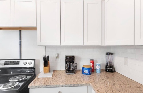 Al instalarte en este alojamiento de 1 dormitorio y 1 baño, encontrarás un sofá cama, una zona para barbacoas y aire acondicionado. Conéctate al wifi, o relájate frente a televisión. El cuarto de baño incluye un secador de pelo y toallas. Prepara una comida casera en la cocina, equipada con horno y frigorífico, además de cafetera y tetera, microondas y utensilios de cocina. Y no tendrás que llevarte ropa de más, porque podrás aprovechar la lavadora y la secadora. Otras comodidades incluyen ropa de cama, una tabla de planchar y calefacción.