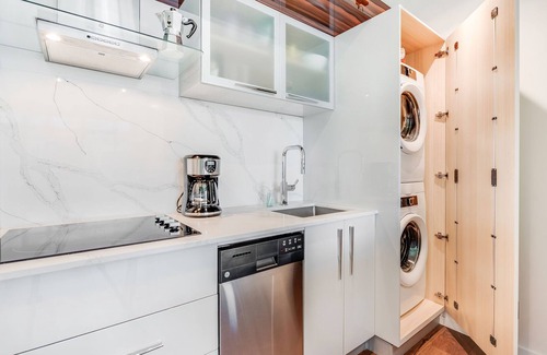 Prepara una comida casera en la cocina, equipada con horno, placa de cocina y frigorífico, además de cafetera y tetera, hervidor eléctrico y microondas. El cuarto de baño incluye un secador de pelo, toallas y papel higiénico. Y gracias a la lavadora y la secadora, podrás viajar con poco equipaje. Otras comodidades incluyen una sala de estar, ropa de cama, una tabla de planchar y calefacción.