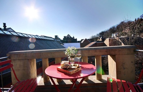 Perfecto para una o dos personas, el salón es muy luminoso y tiene un balcón con una magnífica vista de la Montagne de Bueren y la iglesia de St Antoine.