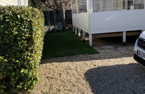 Casa móvil ubicada en una zona muy tranquila en Les Sables du Midi. Equipado para 5 personas máximo. Terraza cubierta. 1 lugar para el automóvil frente a la casa móvil.