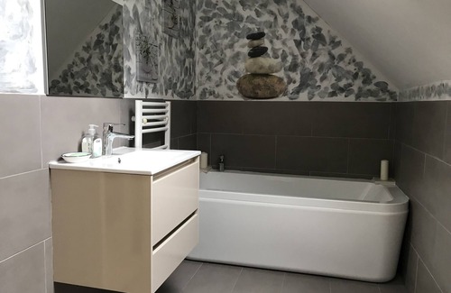 Una hermosa casa de 3 habitaciones dobles separada, todas con camas dobles, la principal con baño para incluir un baño, ubicada en Gathemo, un pequeño pueblo en el corazón de Normandía, y con vistas a los campos. Al ser de propiedad inglesa, puede esperar las habituales comodidades hogareñas como wifi / TV vía satélite ilimitadas, etc.