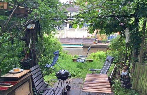 Bienvenido al romántico monumento de la ciudad de Friedrichstadt, conocido por la televisión como Holländerstädtchen. Usted vive en el centro de la tienda histórica de 2 pisos, con muebles originales y creativos, con mucha luz y sol. Ideal para fanáticos del mar del Norte, surfistas, kiters, remeros, corredores de playa que desean algo más que vacaciones. Gratis para usted todo el tiempo: WiFi, un barco de pesca en su propio muelle, barbacoa en un jardín separado en el agua (a 3 minutos de la casa) y un equipo de golf para la playa y el cross-golf, ¡una explosión! 2 bicicletas para excursiones en el dique o en los alrededores. Una bodega para los aficionados que les gusta hacer recuerdos para el hogar de Strandgut.