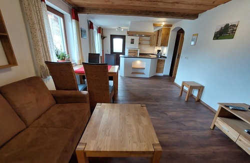 Vacation apartment Stoißberg 48 sqm, 1 bedroom, eat-in kitchen, terrace Se encuentra en Kleinhogl. Vacation apartment Stoißberg 48 sqm, 1 bedroom, eat-in kitchen, terrace ofrece alojamiento, con Chimenea/Calefacción, Internet, Estacionamiento, Entre otras comodidades. Estas características Apartamento Chimenea/Calefacción, Internet, Estacionamiento, Para que su estadía sea cómoda.